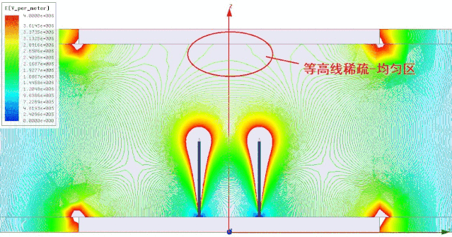 從動圖5對比可以看出,雙針💛在拉遠到一♏定距離,其上方的電場均勻度將會改善,從雙針合一現象,到雙針互不干擾,體現各自性能,所以按照我們大量距離推算,間距d應大于等于針高h。